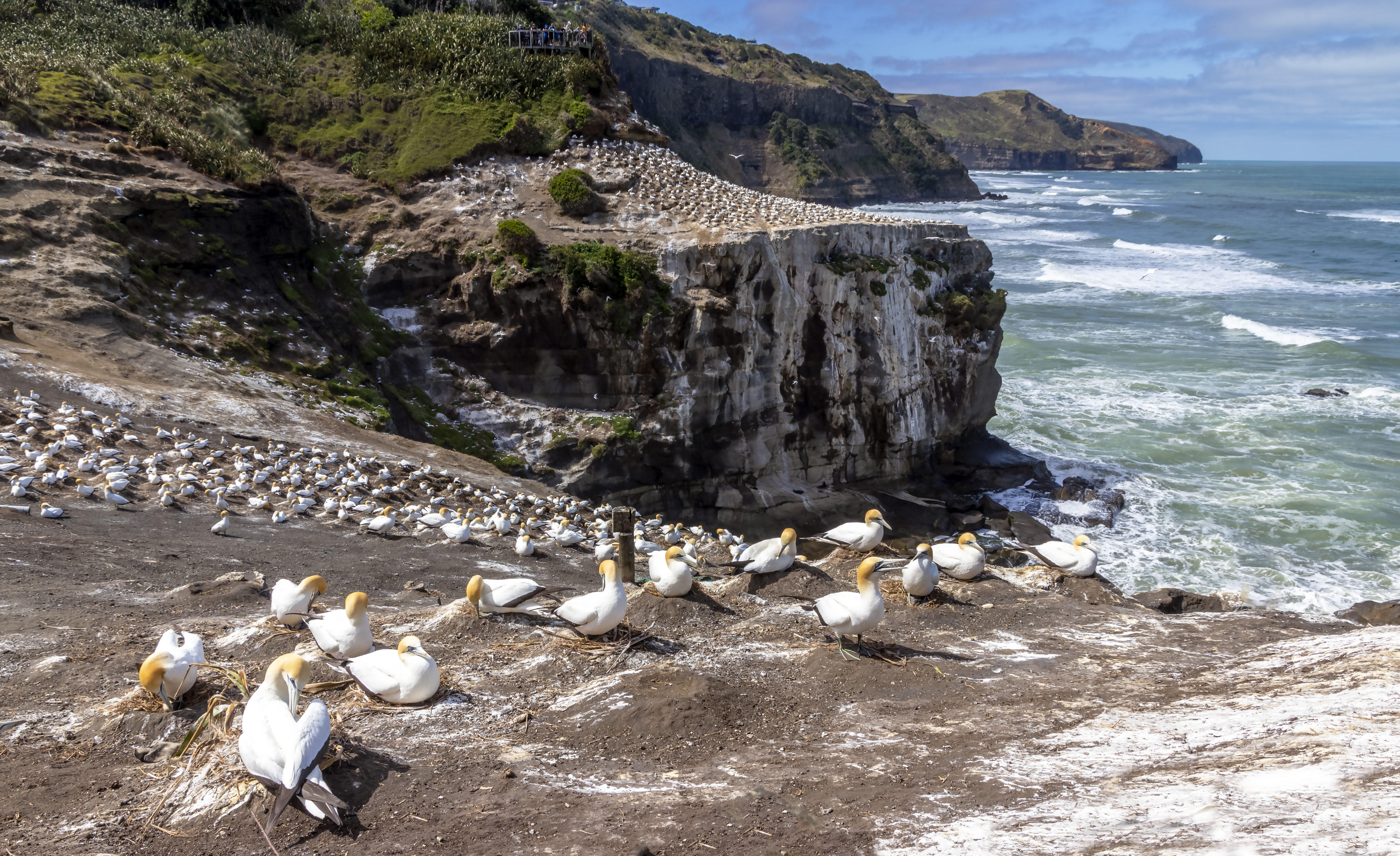 The colony is rare in that it is on the mainland and easily accessible by road. Located on NZ's west coast, there is road access to the nearby Muriwai sufring beach to the north, with another road running to homes immediately above the colony peninsulas.